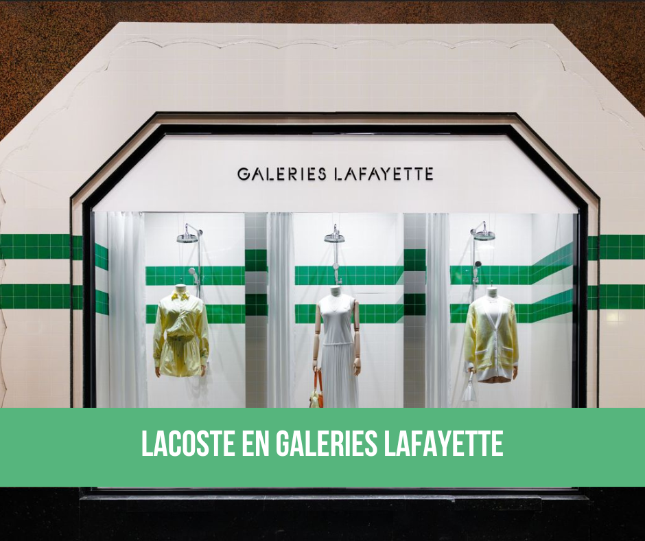 Lacoste acaba de recibir carte blanche en Galeries Lafayette Boulevard Haussmann. Doce vitrinas. Dos pop-ups. Planta baja y segundo piso de la Coupole. Del 16 de marzo al 6 de abril de 2026.